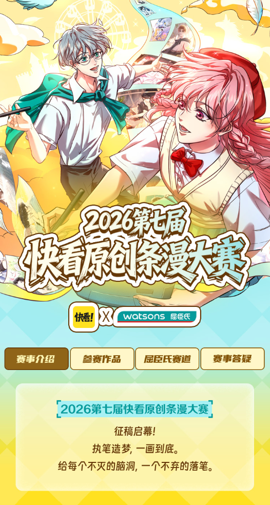 3月26日,2026第七届快看原创条漫大赛正式开启征稿,面向所有有志于漫画创作的个人与团队,开放多赛道投稿通道。作为国内深耕新人漫画孵化的核心赛事,快看原创条漫大赛自2019年落地以来,始终聚焦国产原创漫画的源头活水,为新人创作者搭建从作品展示到职业出道的完整通路。
