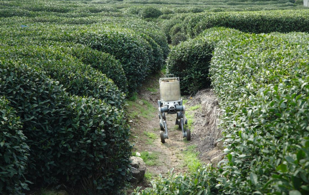 据了解,西湖龙井素有“明前茶贵如金”的美誉,鲜叶采摘后需在1小时内送达制茶工坊,方能锁住核心风味与品质。但其核心产区多为山地丘陵,茶山小道蜿蜒狭窄、陡峭难行,上下坡繁多且通行不便,传统人力转运往返耗时久、效率低,直接制约了龙井春茶的鲜度保障与产业效率。为攻克这一采茶行业痛点,云深处机器人化身“赛博茶农”,携手京东物流,一并成为采茶全链路智能生态的重要成员,深度融入本次春茶采运全流程,以具身智能技术成功打通龙井春茶采运“最初一公里”。